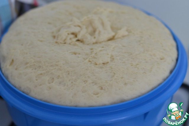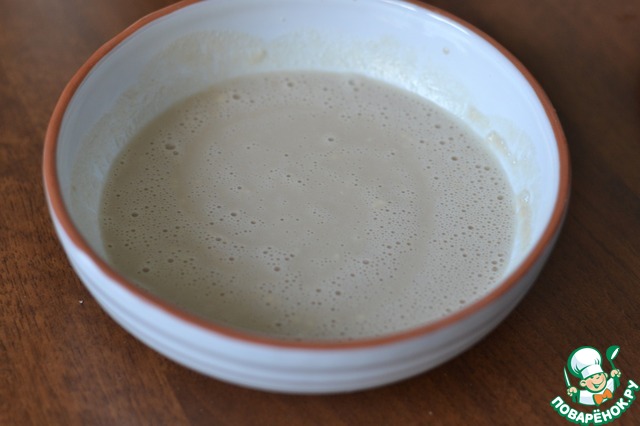 Из подготовленной 650гр муки взять 2 ст. ложки и добавитьв в дрожжи.