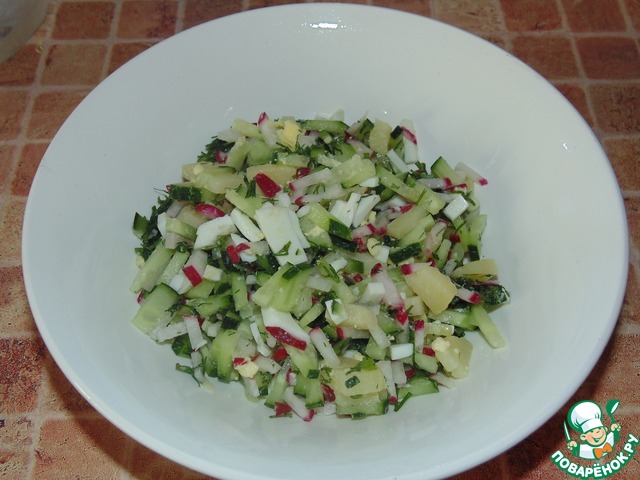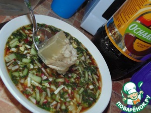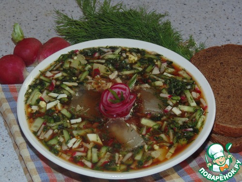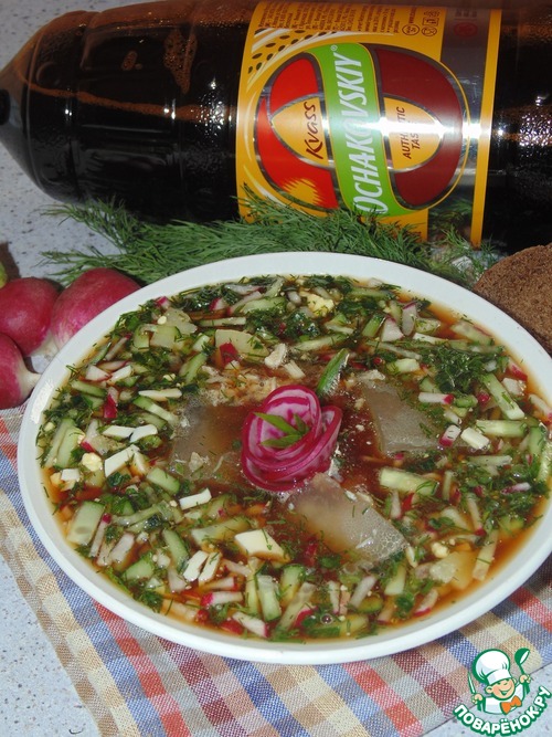 Когда первый раз прочитала про этот конкурс, подумала, что не буду участвовать. Окрошку я не очень люблю, хотя часто готовлю для мужа, и рецепт у меня банальный... Но разговорившись со свекровью узнала интересный семейный рецепт. Оказалось, что у них в деревне окрошку всегда готовили с холодцом, который летом хранился в погребе. Конечно же решила опробовать семейный рецепт на новый лад.