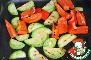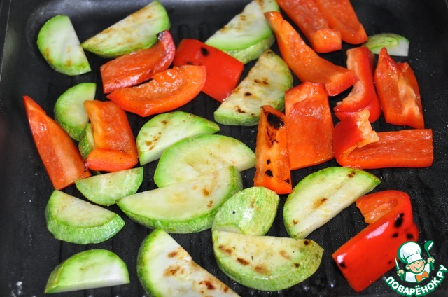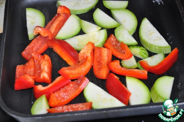Смазываем сковороду-гриль маслом (1 ст. ложка) и обжариваем овощи.