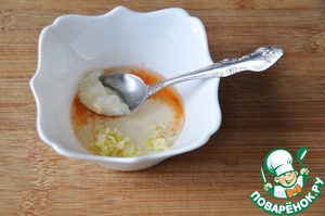 смешиваем оставшееся оливковое масло, соль, табаско, мёд, сок лимона, бальзамический уксус.