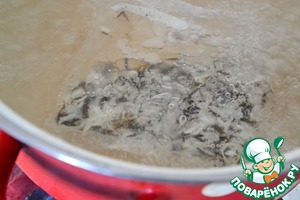 Пока нарезаем зелень и трем чеснок, рис сварился.