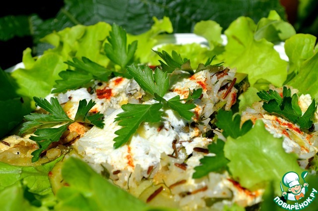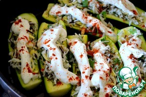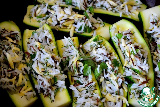 Рецепт «Кабачки, фаршированные рисом, зеленью и сыром»: