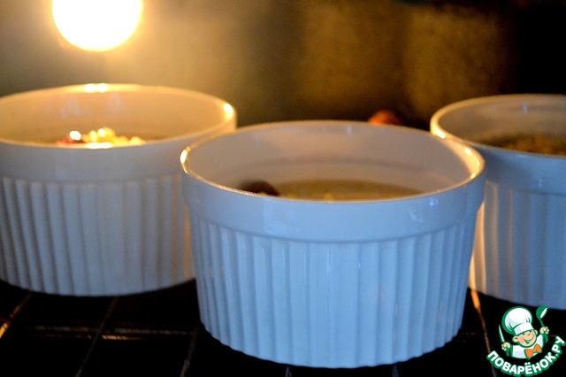 Запекаем в разогретой до 180 градусов духовке примерно 20 минут. Керамические формы (как у меня) ставим в холодную духовку, разогреваем духовку до нужной температуры вместе с ними - чтобы не лопнули.