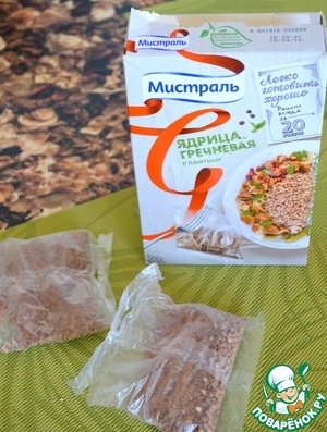 Используем для приготовления гречневую крупу от Мистраль - она варится в пакетах за считанные минуты.