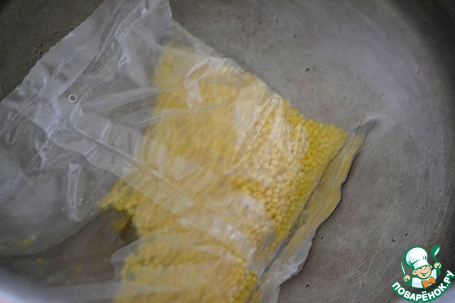 ... и пшено. Я использую пшено в пакетиках от Мистраль. Очень удобно - кладу в закипевшую воду пакетик, через 10 минут получаю стакан пшена в состоянии полуготовности - то, что нам и надо по рецепту.