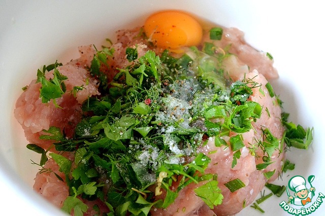 Кладем ее в фарш, туда же - соль, перец и яйцо