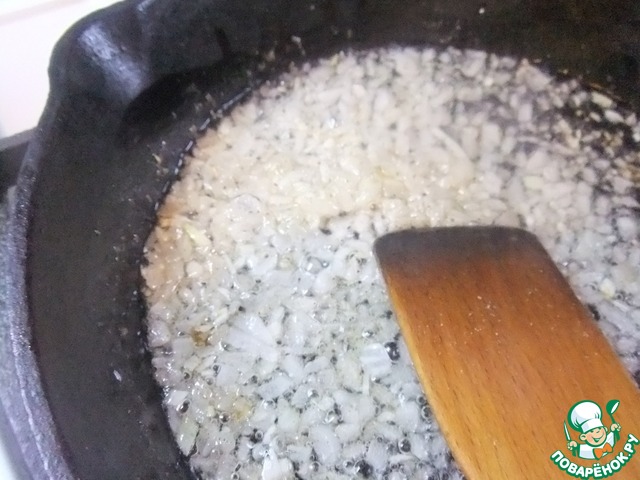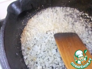 Обжарить на растительном масле 1/2 луковицы, нарезанной кубиком
