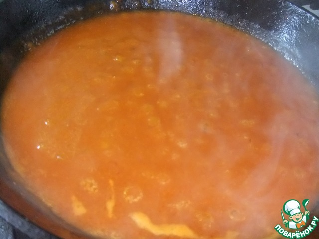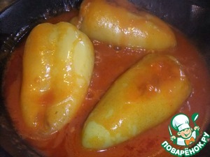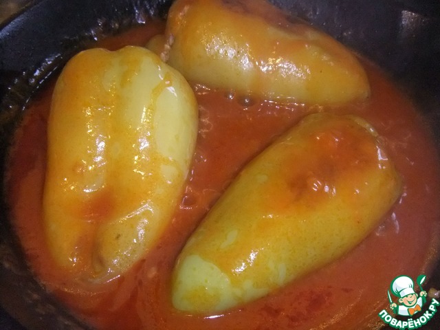 • К подливу положить перцы, накрыть крышкой и тушить.