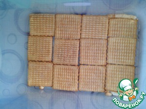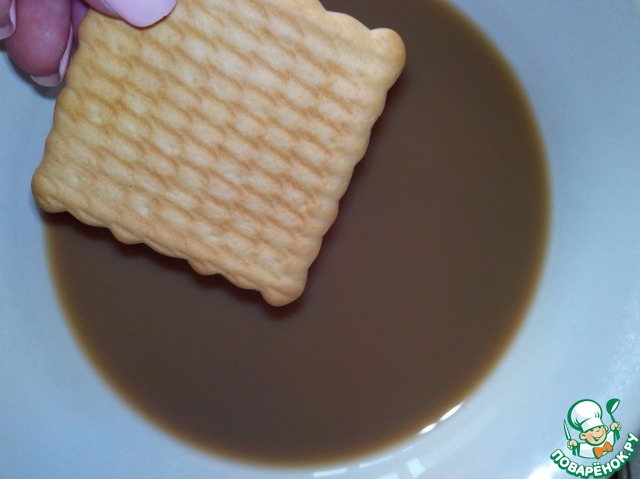 Торт удобно собирать в большом прямоугольном пластиковом контейнере или глубокой форме для выпечки. Развести кофе. Я сделала с молоком. Каждую печеньку обмакнуть в кофе.