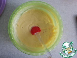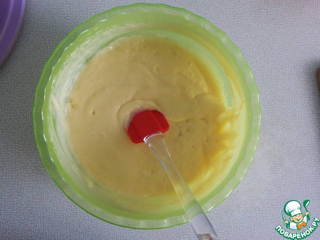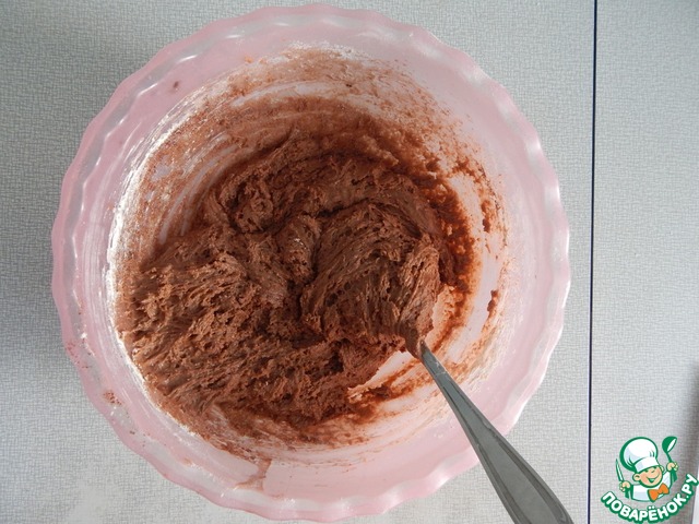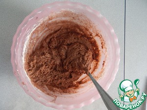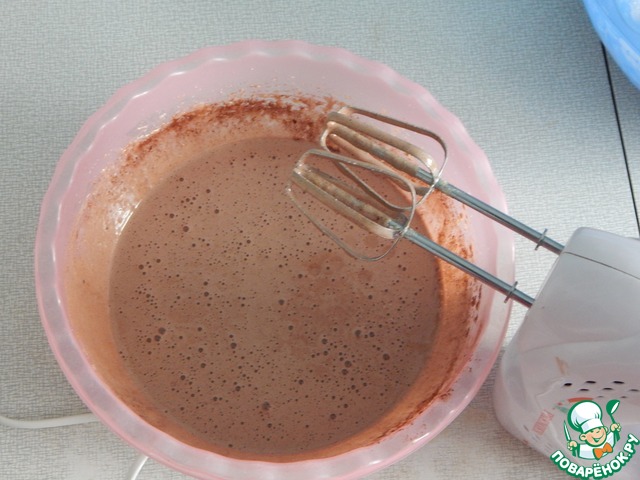 Теперь тесто, надо взбить яйца с сахаром, добавить мед+сода+какао (хорошенько перемешать).