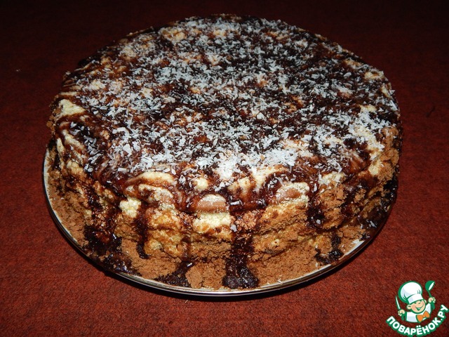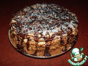 Скажу вам пекутся коржи быстро так, что не прозевайте :D Смазываем коржи кремом, поливаем помадкой, присыпаем жаренными орешками.