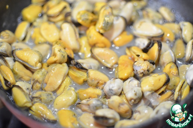 А мидии у нас не покупные, так как живем на черном море,знаем места, где нужно нырять и собирать их.