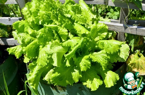 А это салат, который я посадила тоже в бочку, в которой не взошли семена огурцов.