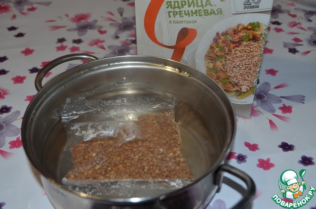 Отварить 1 пакетик гречки в подсоленной воде.