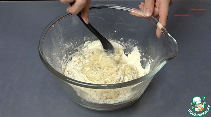 Готовить очень просто и быстро. В просеянную муку добавляю воду, подсолнечное масло, сахар и соль. Замешиваю тесто. -
