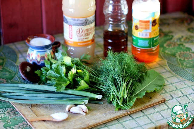 - Хрен (лист, и 1 ст.л. измельчённого корня.) — 1 шт