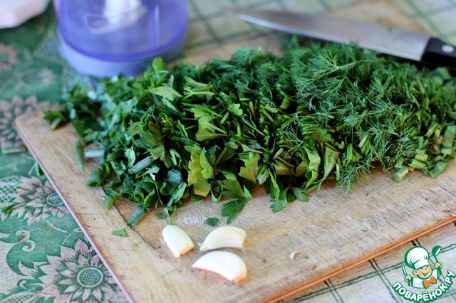 Первым делом приготовим свежую зелень, помоем и обсушим.