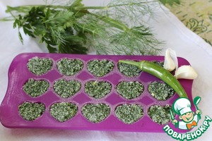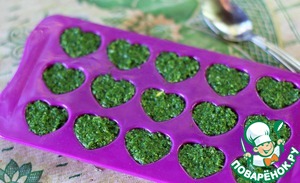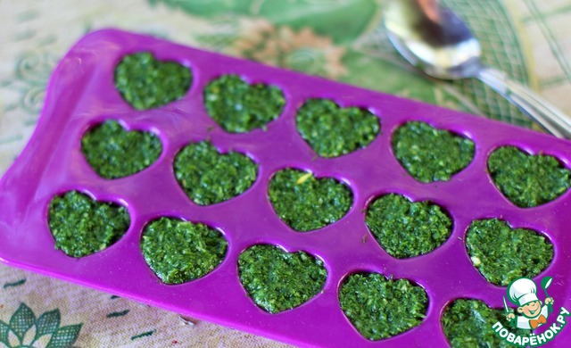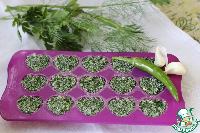 У каждой хозяйки свои секреты! У меня летом всегда, в морозилке, заготовлено несколько форм с зеленым льдом. Эти маленькие ледышки являются отличным дополнением к окрошке, когда хочется похолоднее. А ещё секрет в том что мои мужчины - отец, муж и старший сын любят поострее и такая заморозка помогает мне приготовить одну окрошку на всю семью, а при подаче подперчить сильной половине. Кстати, зелёный лед отличная заготовка на зиму, прекрасно подойдет и к борщу, и к картошечке.