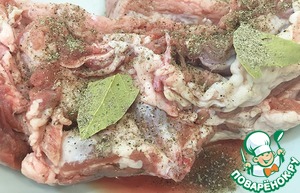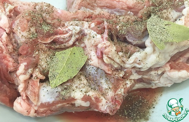 Мясо солим и перчим. Мясо я не резала - оставила одним куском.