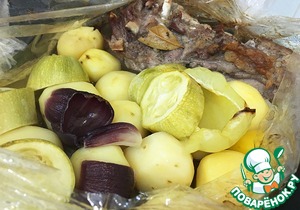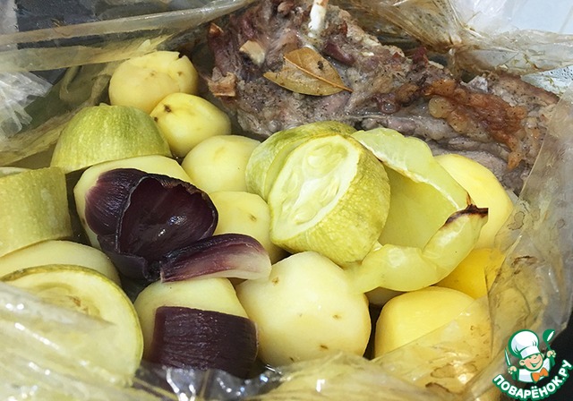 Свинина с молодым картофелем и кабачками, запеченная в рукаве. Сегодня было мало времени на приготовление обеда. Поэтому делала все по-быстрому. В результате все мои мальчики остались очень довольны.