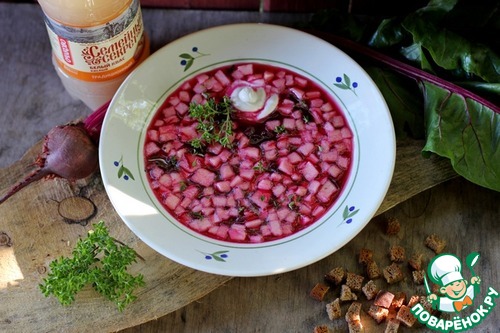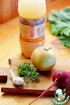 • В квас положить измельчённые яблоко, свёклу и тимьян.