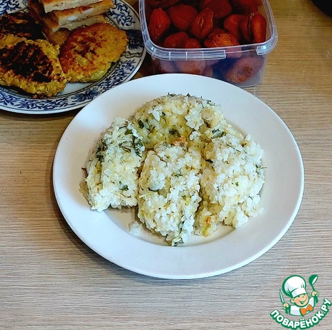 За это время рис сварился, вынимаем, даем стечь воде и смешиваем с кабачковой массой. Дать немного остыть.