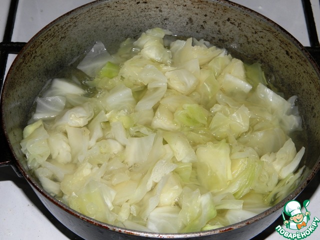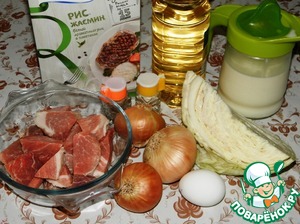 • Рис отварить до полуготовности, остудить. Капусту нарезать, отварить, сцедить воду и остудить