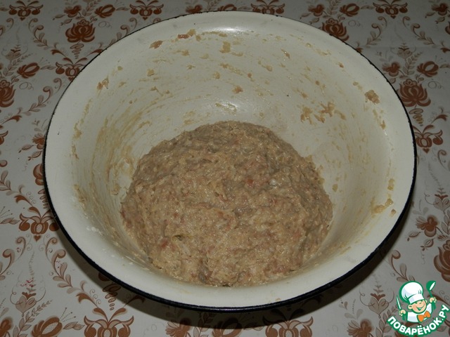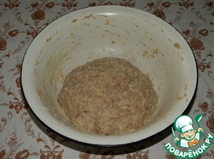 Пропустить через мясорубку мясо, лук, чеснок, отваренные рис и капусту.
