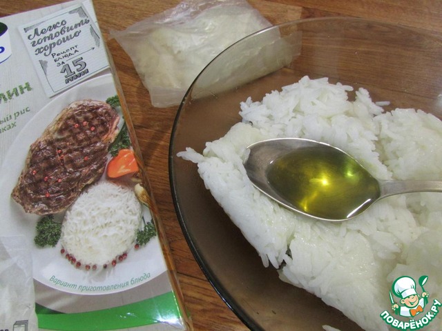 Затем выложить рис из пакетиков в миску.