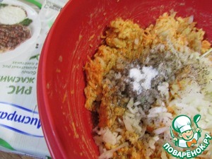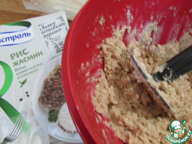 К рисово-морковной массе добавить лук, фасолевое пюре.