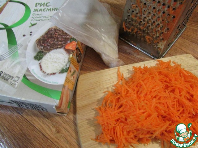 В миске смешать рис и морковь.