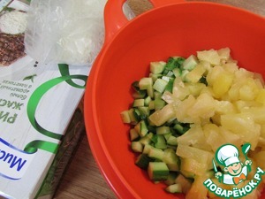 - Ананас (консервированный, нарезанный кубиками) — 100 г