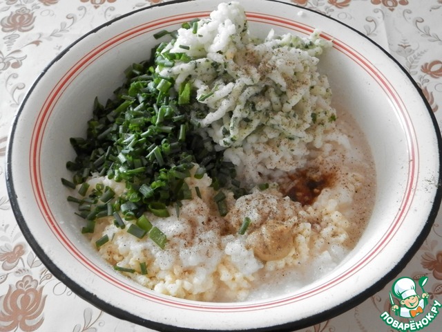 Рецепт «Оладьи рыбные с рисом и сыром»: