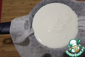 Или просто выложите йогурт в марлю, скрутите и подвесьте над емкостью. -