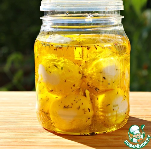 Шарики сложить в банку, с залить оливковым маслом, посыпать травками можно добавить чеснок.