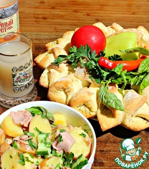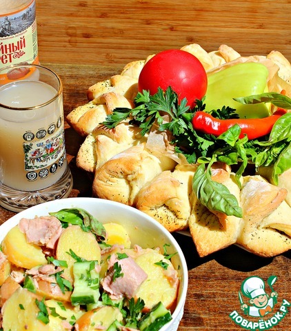 Отщипываем "хлебные кулечки", пробуем салат и вкушаем прохладный квас!