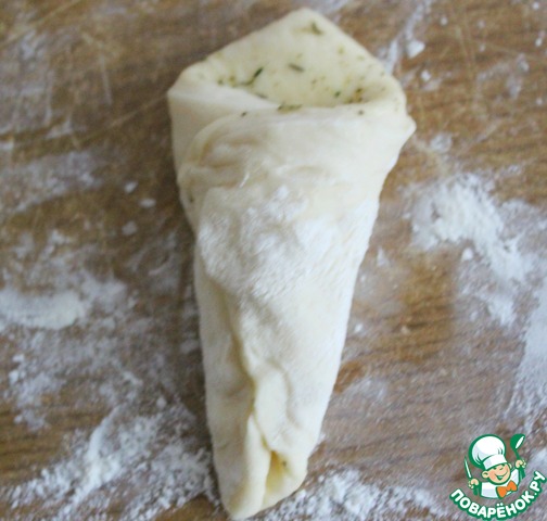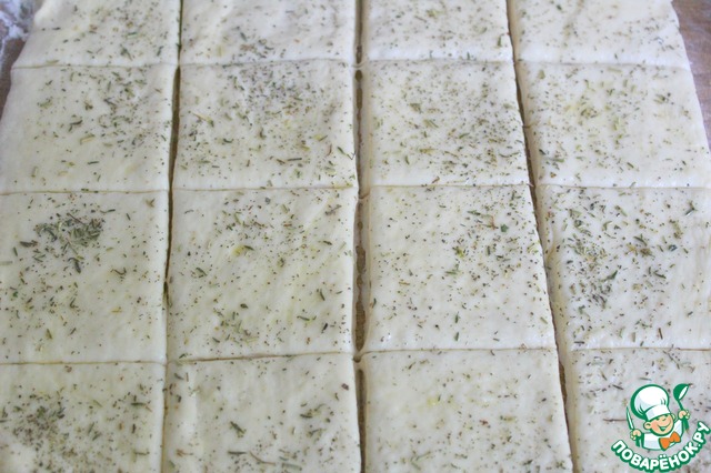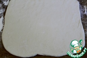 Раскатать тесто в квадрат толщиной 5 мм.