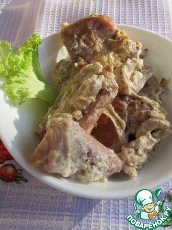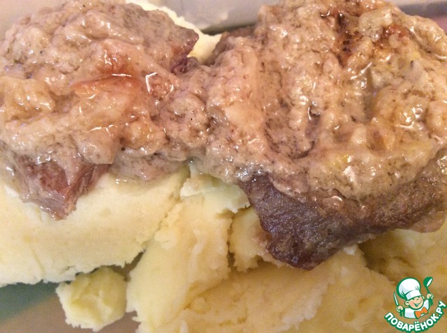 В классической интерпретации сметану (200-300 мл) надо развести водой и залить этим соусом мясо.
