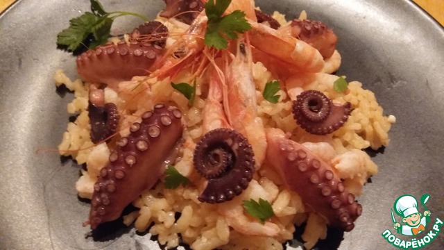 Рецепт «Розовый ризотто "Утренний улов"»: