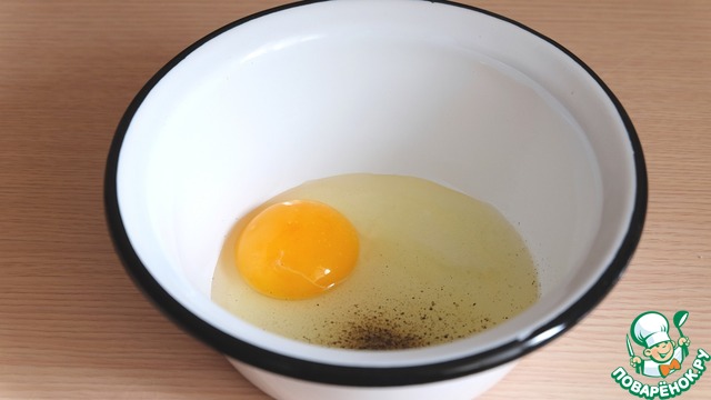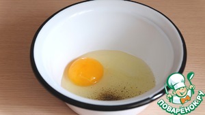 Добавить в миску одно яйцо, соль, черный молотый перец.