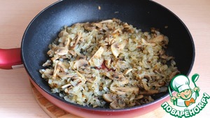 Смесь лука и грибов готова.
