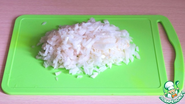 Лук измельчить.