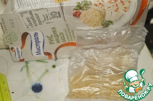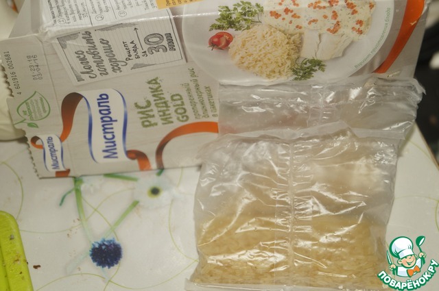 • Рис отварить до готовности как указано на упаковке, вынуть из воды и дать ей стечь.