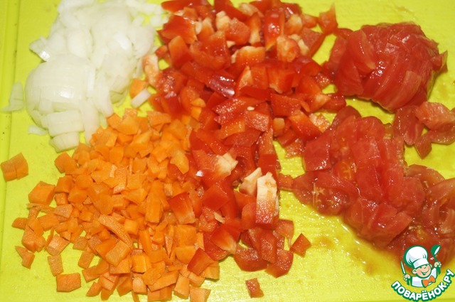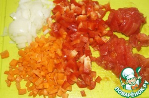 • Овощи промыть, очистить и нарезать небольшим кубиком.