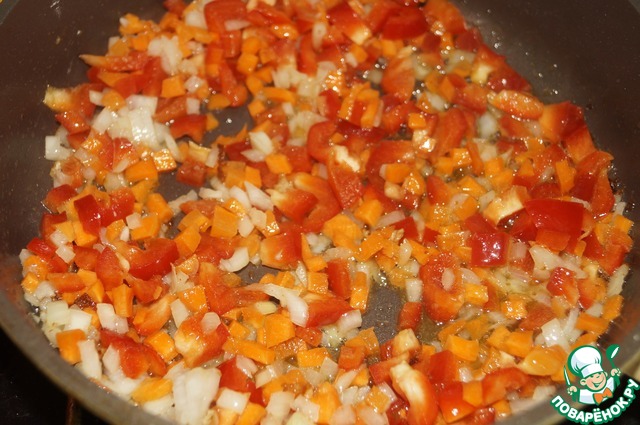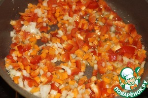 • Обжарить овощи на растительном масле до мягкости, снять с огня.