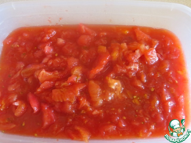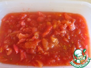 Помидоры очистить от кожуры и мелко нарезать. Отправить к мясу