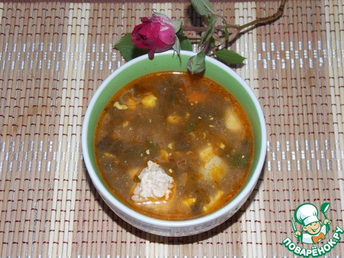 Рецепт «Томатно-щавелевый суп с фрикадельками»: