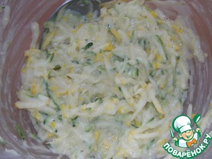 Натереть на средней тёрке. Лишнюю жидкость отжать.