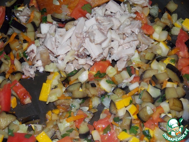 Добавить куриное филе.
