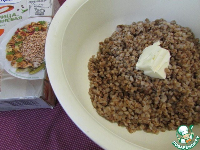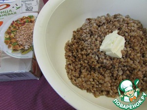 Ядрицу гречневую Мистраль в варочных пакетиках положить в кипящую подсоленную воду. Варить до полуготовности, около 15 минут. Освободить гречку от пакетиков и положить кусочек сливочного масла, перемешать.